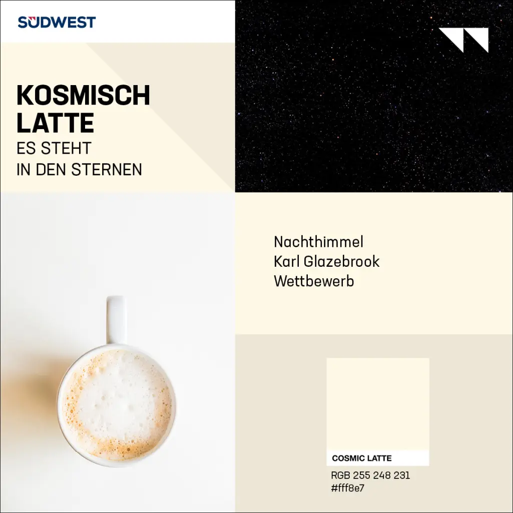 Fun fact: We have researcher Karl Glazebrook to thank for all this. He found the beige shade so boring that he launched a competition to find a name for it. As he was a passionate coffee drinker and the light beige colour was similar to milk foam, the suggestion “cosmic latte” eventually came out on top.